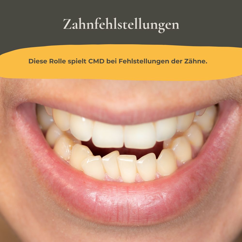 CMD (Craniomandibuläre Dysfunktion) ist eine Funktionsstörung des Kiefergelenks und der Kaumuskulatur, die durch verschiedene Ursachen ausgelöst werden kann – darunter auch Zahnfehlstellungen. Eine ungleichmäßige Zahnstellung oder ein falscher Biss belasten das Kiefergelenk und können CMD-Symptome wie Kieferschmerzen, Kopfschmerzen und Nackenverspannungen verstärken. In diesem Artikel erfahren Sie, wie Zahnfehlstellungen CMD beeinflussen und wann eine kieferorthopädische Behandlung sinnvoll ist.